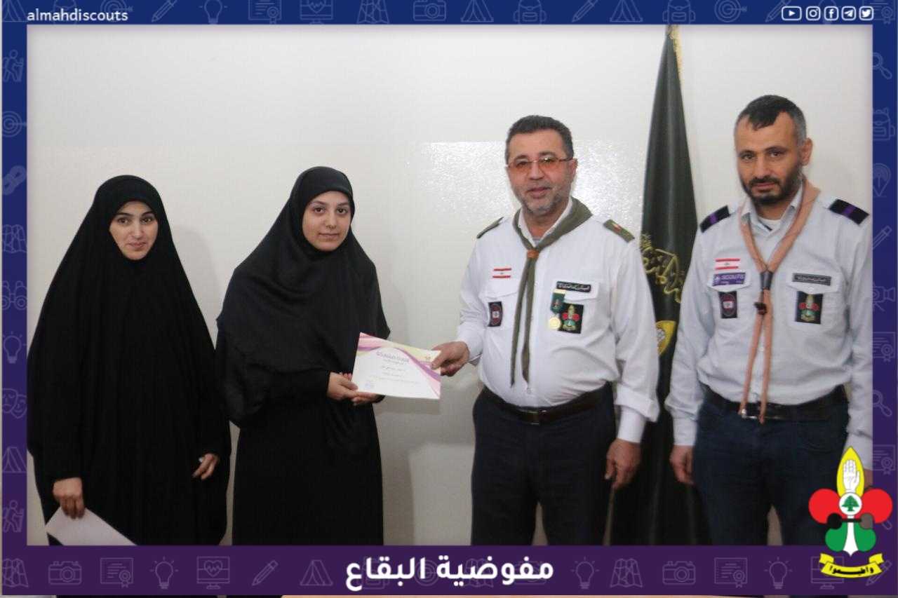 بعد سبعة أيام من الجد والنشاط، اختتمت مفوضية البقاع دورة "السيدة مريم بنت عمران عليها السلام" مستوى أول بدرجة قائدة، وبحضور مفوض البقاع، أمينة التدريب، قائد القطاع الشرقي، أمينة المرشدات في القطاع، قيادة الدورة والقائدات الخريجات، كان حفل الإختتام حيث اكد مفوض البقاع في كلمته، على المسؤولية التي حملتها القائدات الخريجات في خطوتهن الأولى هذه، واللواتي بدورهن شكرن الجمعية وأكدن على أنهن سيكملن سلّمهن التدريبي ليكن بخدمة أجيال التمهيد وذلك ضمن كلمة بإسمهن، ليختتم الحفل بتوزيع إفادات المشاركة ونشيد الوداع...