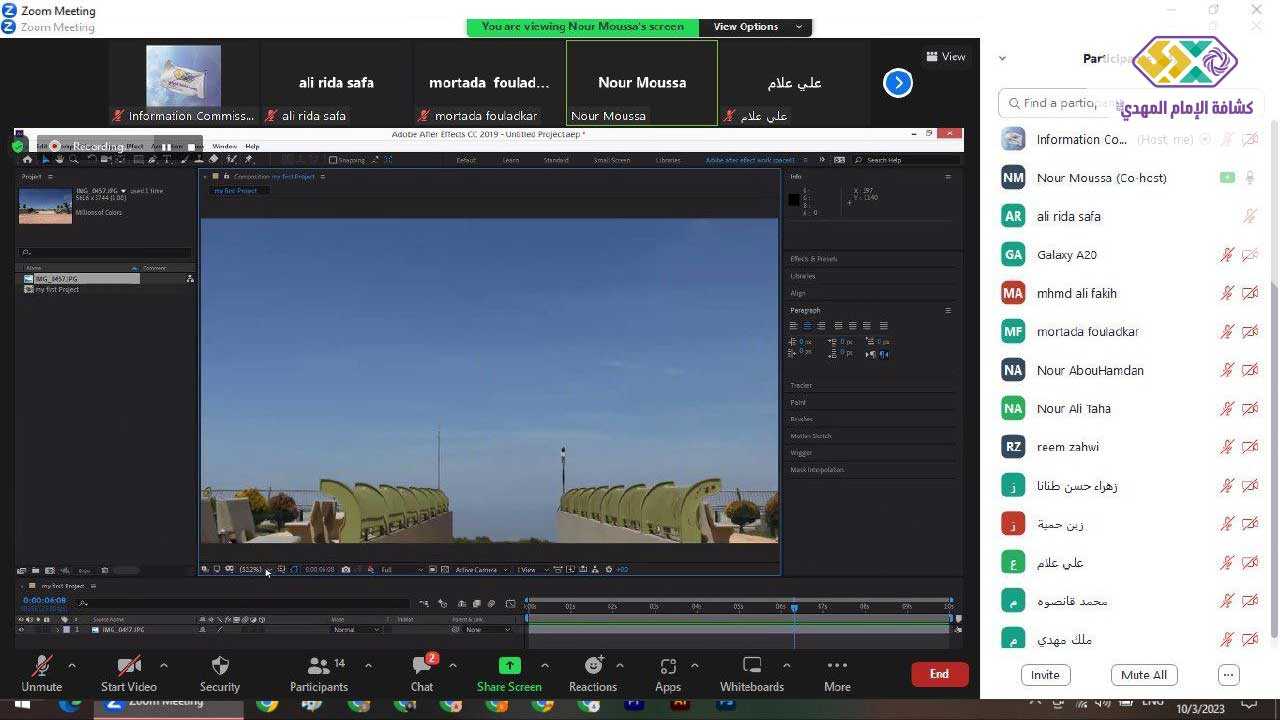 نفّذت الوكالة الإعلامية التابعة لجمعية كشافة الإمام المهدي (عجّل الله فرجه) دورة after effect - مستوى أول، قدّمها المدرب الأستاذ موسى نور الدين، بمشاركة ١٣ متدرب ومتدربة من مختلف مفوضيات المناطق، وذلك في إطار تطوير العمل الإعلامي في الجمعية.