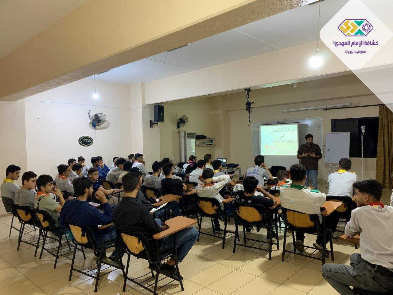 تلبية للاحتياجات التدريبية المقررة في منهاج تنمية القيادات وضمن المسار الرتبي لعضو قيادة فوج ، أقامت أمانة التدريب في مفوضية بيروت ورشة لمدربي حقيبة "مساندة الاطفال في الازمات" والتي قدمها القائد الكشفي محمد ناصر الدين ( أخصائي في علم النفس العيادي) بمشاركة بها ٢٤ قائد.