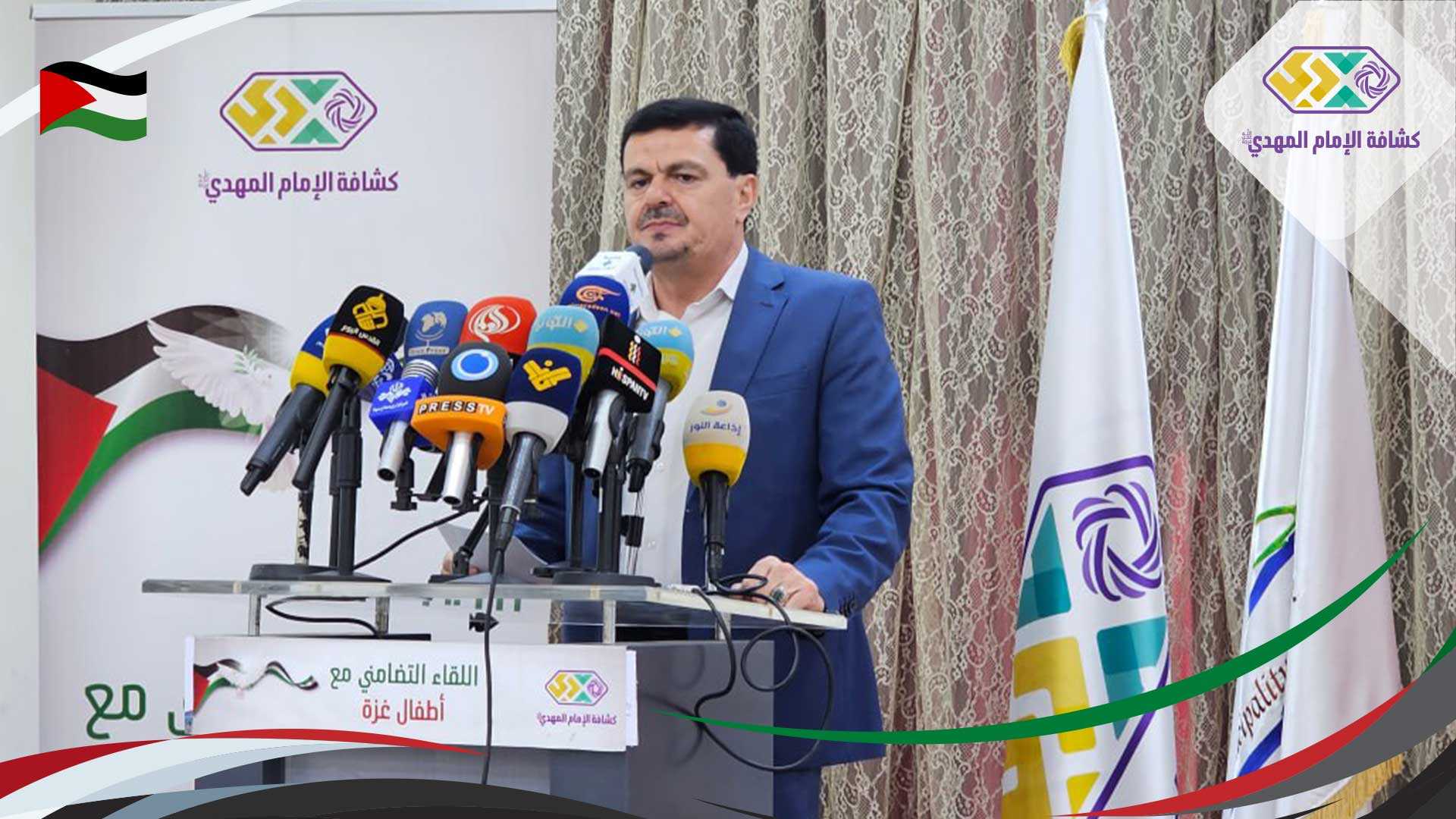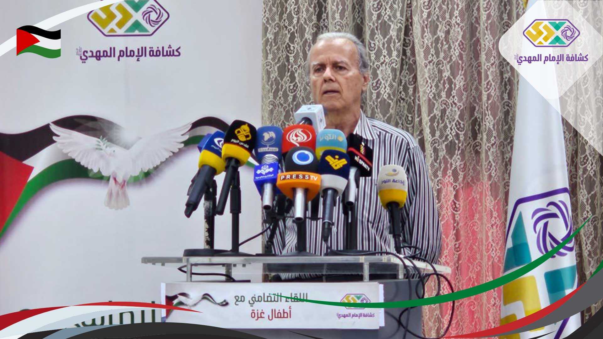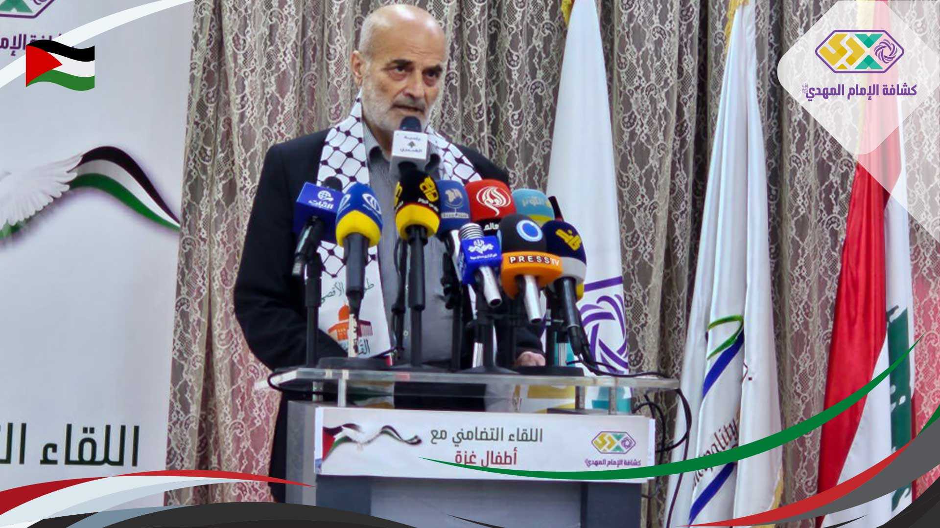 بعد نشيد الجمعية والنشيد الوطني الفلسطيني وكلمة ترحيبية من مفوض العلاقات العامة نضال شعيب توجه رئيس الجمعية الشيخ نزيه فياض بالتحية والسلام والإكبار والاجلال لصمود الصامدين في غزة وللنساء وللأطفال من الفتية والفتيات وللرضع ولعشرات الالاف من الضحايا المقتولين بدم بارد والمنشورة صورهم وصور اشلائهم الممزقة على اعين العالم وأضاف الشيخ فياض :" إن كنا نزعم أو نصدق أن في هذا العالم حقوقا للانسان وحقوقا للأطفال وحقوقا للنساء، وإن للحروب حدودا ايضا ، فإننا لن نكتفي ، ستكبر أصابع الإدانة لتدخل في أعين هذا العالم المغمضة عن دمنا المسفوك والذي يتعامى عن حقيقة ما يجري في غزة كما تتعامى عن اليمن واطفال اليمن واهل اليمن، وختم فياض :"معكم يا أطفال فلسطين معكم يا نساء فلسطين معكم يا أبطال فلسطين معكم يا كل المحرومين والمظلومين والمقتولين في العالم، واللعنة على الوحش القاتل وان موعدكم الصبح اليس الصبح بقريب"، بعدها توالت الكلمات المنددة بالإعتداءات الوحشية والهمجية للعدو الصهيوني على أطفال وشعب غزة وفلسطين، حيث استعراض المجازر وأعداد الشهداء من الأطفال والنساء وغير ذلك بالأرقام والشواهد، وأكدت المداخلات على غياب المجتمع الدولي ومنظمات حقوق الإنسان وحقوق الطفل والمنظمات الدولية.
