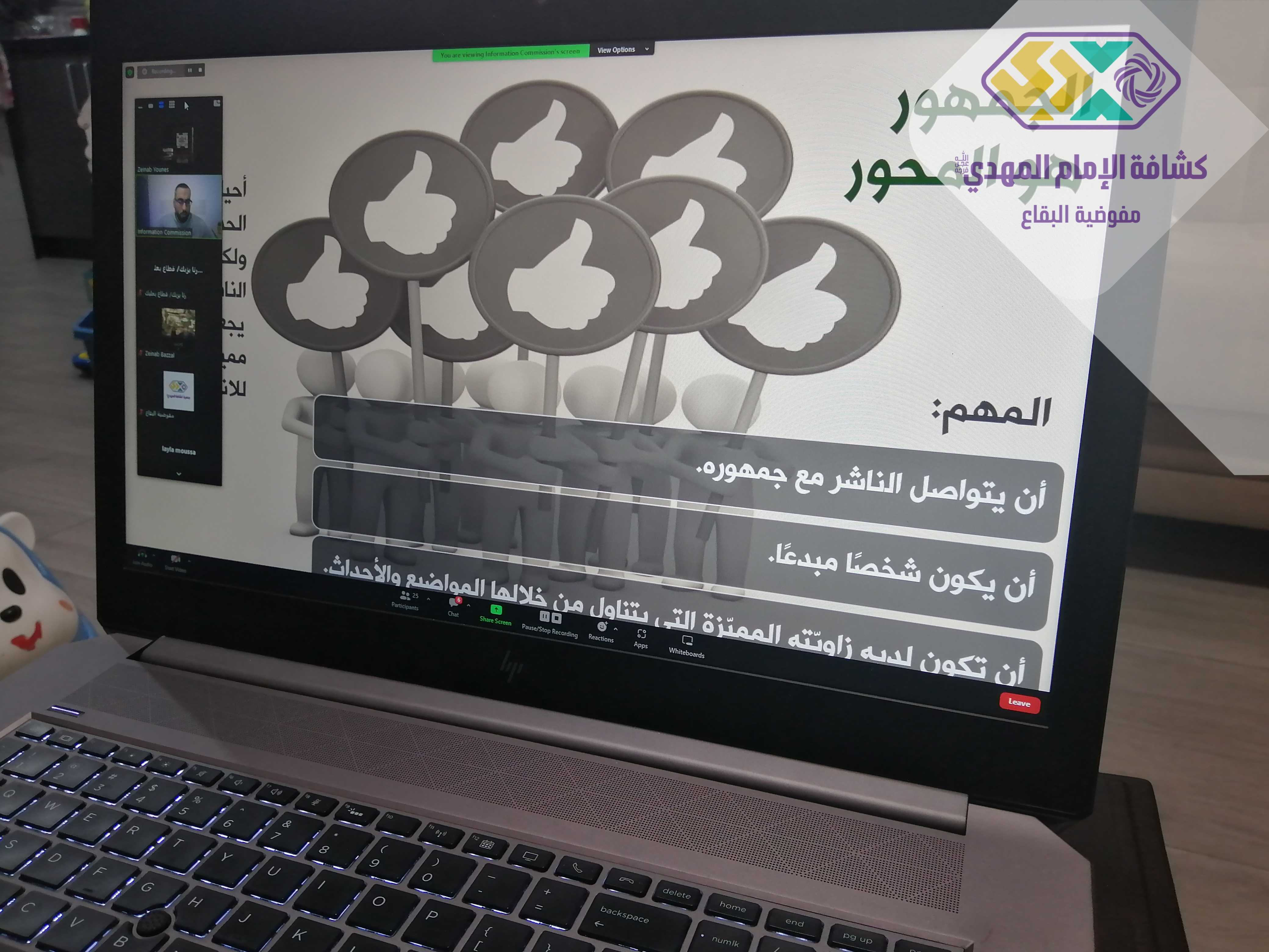 شاركت 23 قائدة من الفاعلات في العالم الإفتراضي في مفوضية البقاع بورشة "الجبهة المجازية" المستوى الثاني، والتي قدمها أمين الإعلام الإلكتروني في مفوضية الاعلام القائد محمد رعد.