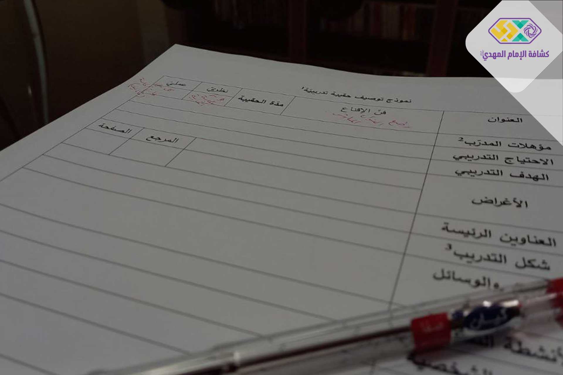 نفذت مفوضية البرامج العامّة في جمعية كشافة الامام المهدي (عجل الله فرجه) ورشة تعريفية حول نموذج توصيف حقيبة تدريبية لأعضاء مفوضيات الاختصاصات مع المدرب محمد عودة، تضمنت الورشة شرح للعناوين المدرجة ضمن بطاقة توصيف الحقيبة وكيفية إعدادها .