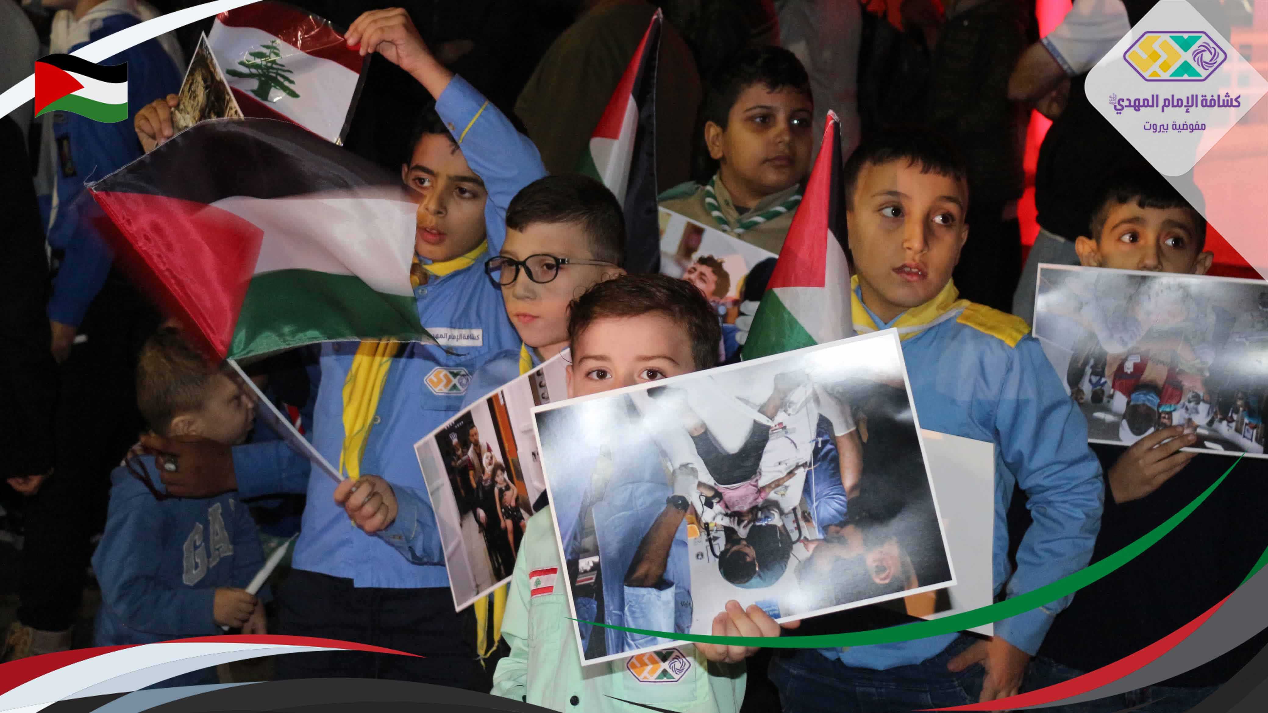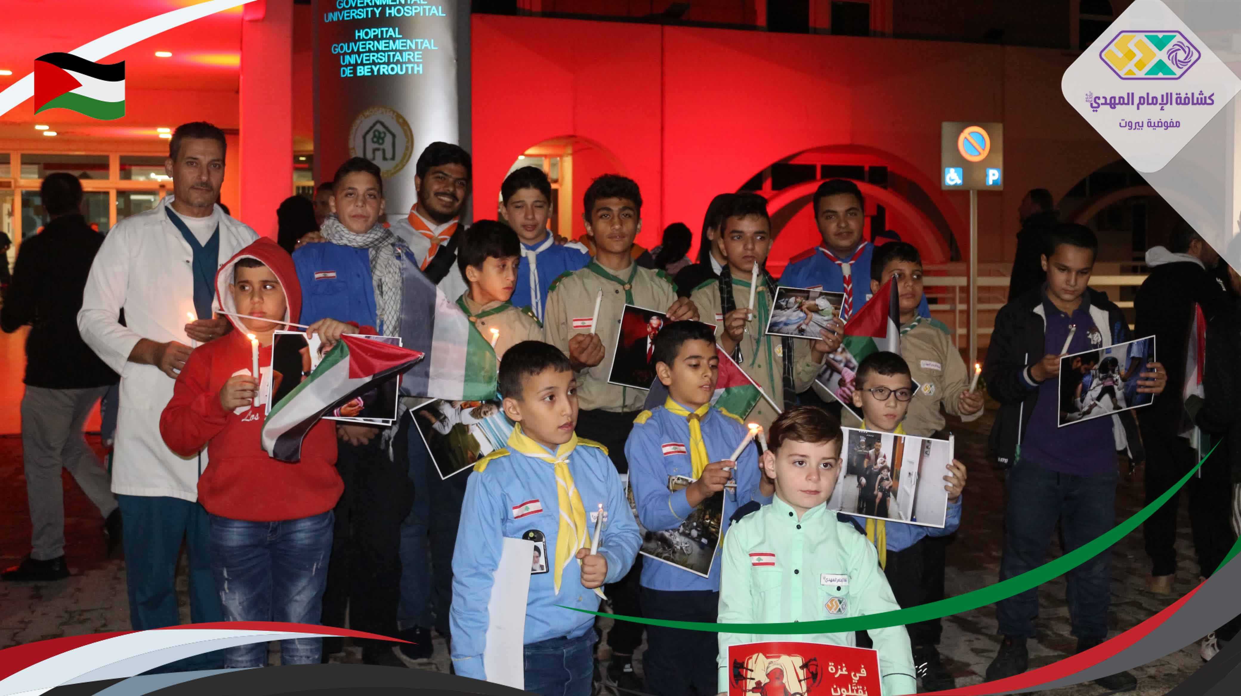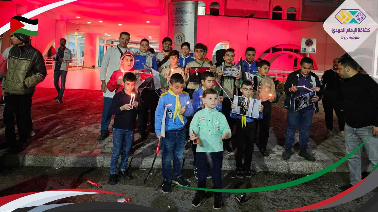 كي لا يصبح انتهاك الطفولة، قتلُ الأحلام، واغتيال الخدّج خبرًا عاديًّا. شارك القطاع الخامس - بيروت في الوقفة التضامنية دعمًا لصمود الشعب الفلسطيني في مستشفى رفيق الحريري الجامعي بمشاركة 70 كشفي وكشفية.