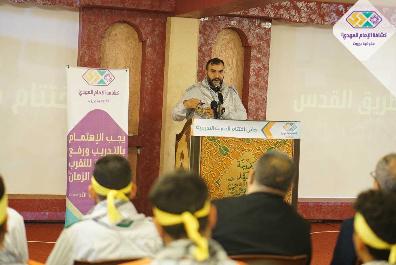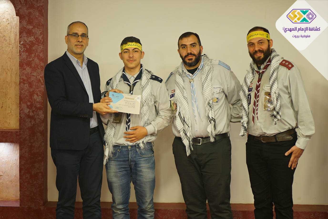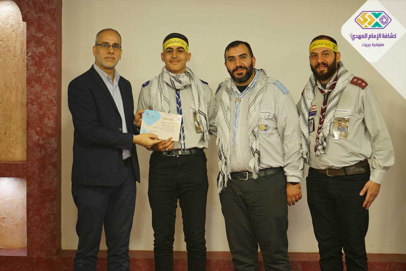 برعاية وحضور مسؤول منطقة بيروت السيد حسين فضل الله، اختتمت مفوضية بيروت دفعتها التدريبية على طريق القدس والتي ضمت عشر دورات بمشاركة ٣٠٠ قيادي ومتدرب ،حيث نفذ لهم مبيت كشفي في مدينة السيد عباس الموسوي- رياق وكان مسك الاختتام حفل مهيب استهلّ بقراءة القرآن الكريم والنشيدين وكلمة ترحيبية لقائد المخيم وتقرير مصور عن الدفعة وبعدها كلمة لراعي الحفل أكد على أهمية التدريب للقادة الكشفيين ونوه بجهود مفوضية بيروت واختتم الحفل بتوزيع الافادات على المجليين في العشر دورات حيث نالو زيارة تكريمية الى مقام السيدة زينب (ع) وتم سحب قرعة لزيارة الى المقامات المقدسة في العراق.