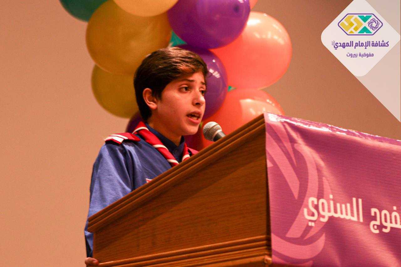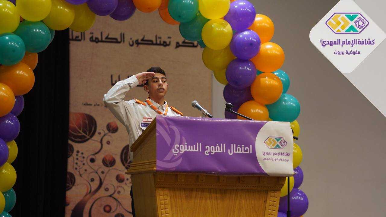 بمشاركة اكثر من 750 كشفي و اهالي الكشفيين, اختتم فوج الإمام المهدي "عج" احتفاله الأربعين. استهل النشاط بقراءة القرآن الكريم وعرض إنجازات عام 2023 بالتقرير السنوي للفوج، ثم كلمة عميد الفوج التي شرح فيها أهداف العام المقبل, وانشدت فرقة مهدي الإنشادية نشيدها الأول "تعدد الحبُ" في ذكرى ولادة أمير المؤمنين عليه السلام.