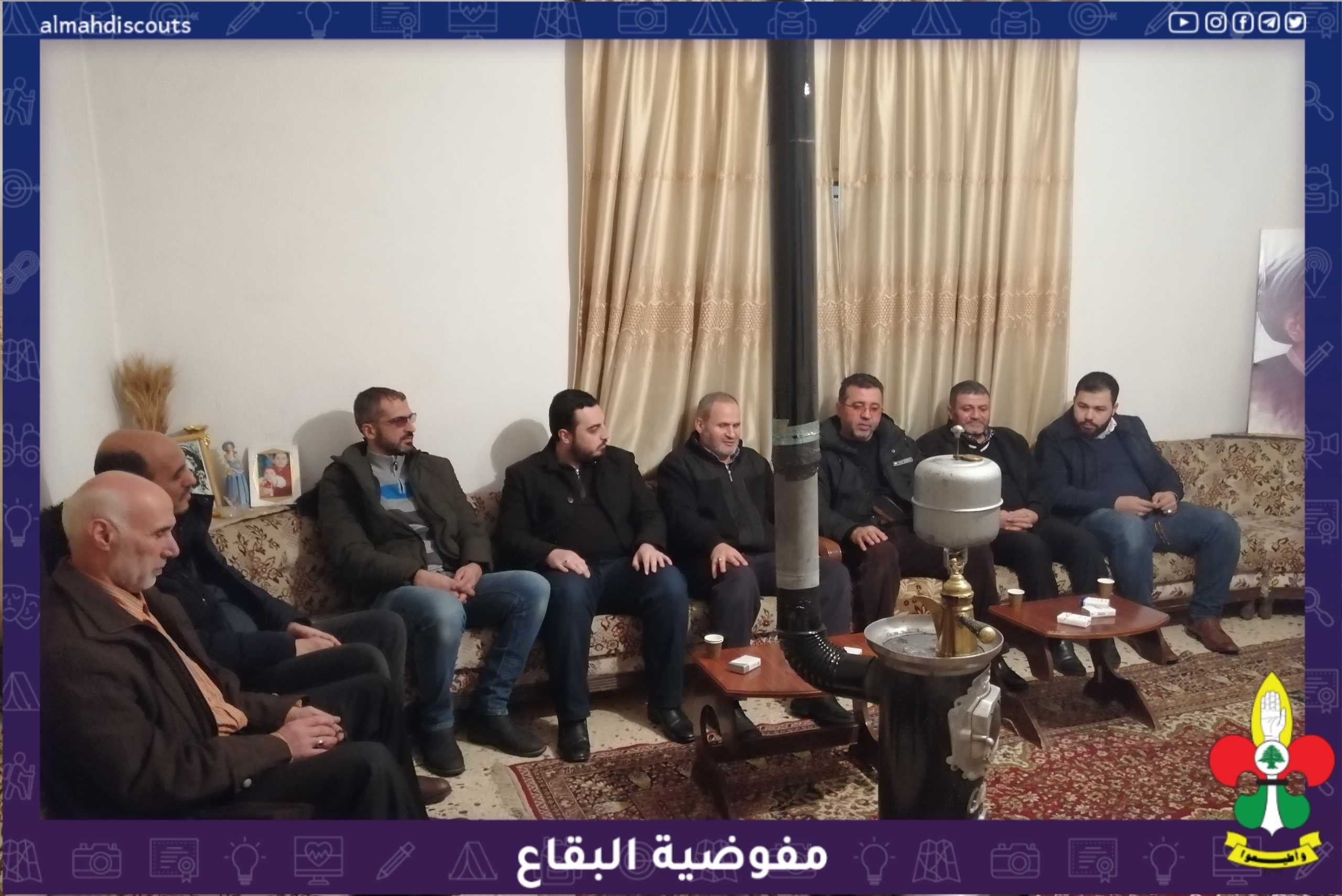 زار وفد من كشافة الامام المهدي عجل الله فرجه الشريف مفوضية البقاع يترأسه مفوض البقاع الحاج حسين زين وأعضاء المفوضية نائب المفوض العام لكشافة الرسالة الاسلامية الحاج عبدو صيدح لتقديم واجب التعزية بوفاة والده وذلك في بلدة حارة الفيكاني