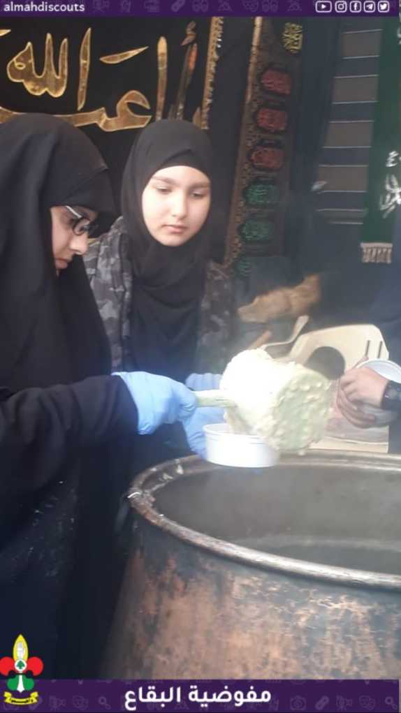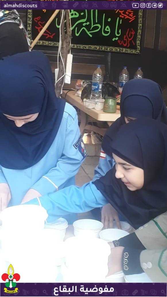 في اجواء شهادة السيدة فاطمة عليها السلام، اقام فوج الامام العسكري وفوج السيدة حكيمة/ تعلبايا/ القطاع الاوسط مضيف السيدة الزهراء عليها السلام حيث تمّ إعداد الهريسة وتقديم الضيافة على المارة وعلى البيوت ، واختتم اليوم الفاطمي بلطمية للحاج رامي ابو حمدان بحضور الكشفيين المواسين لقلب صاحب الزمان