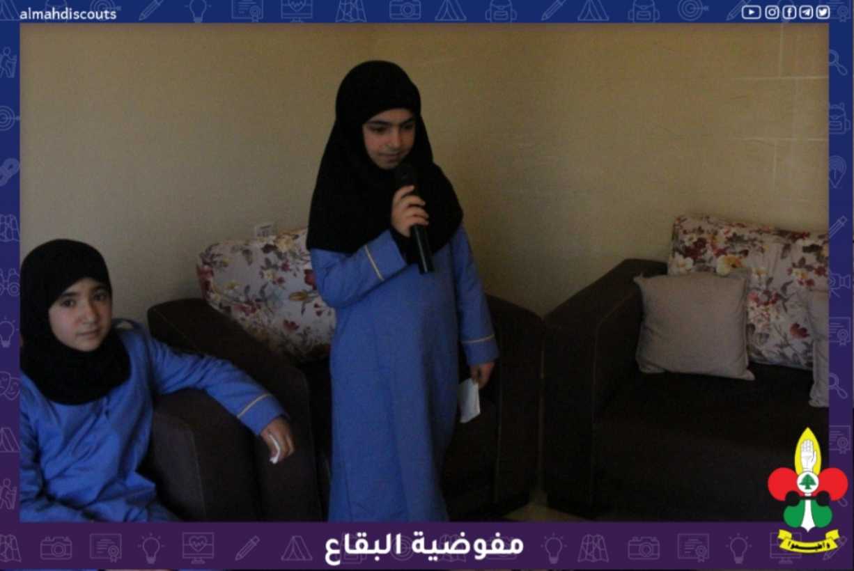 بمناسبة شهادة عزيزة قلب رسول الله صل الله عليه وآله السيدة الزهراء عليها السلام نظم فوج السيدة نرجس/ أمهز/ القطاع الشمالي مجلس عزاء في منزل احدى الكشفيات، وبحضور الزهرات والمرشدات قدمت القائدات قصة عن السيدة الزهراء مع طرح مجموعة من الاسئلة، واختتم المجلس بدعاء الامام المهدي الحجة عليه السلام