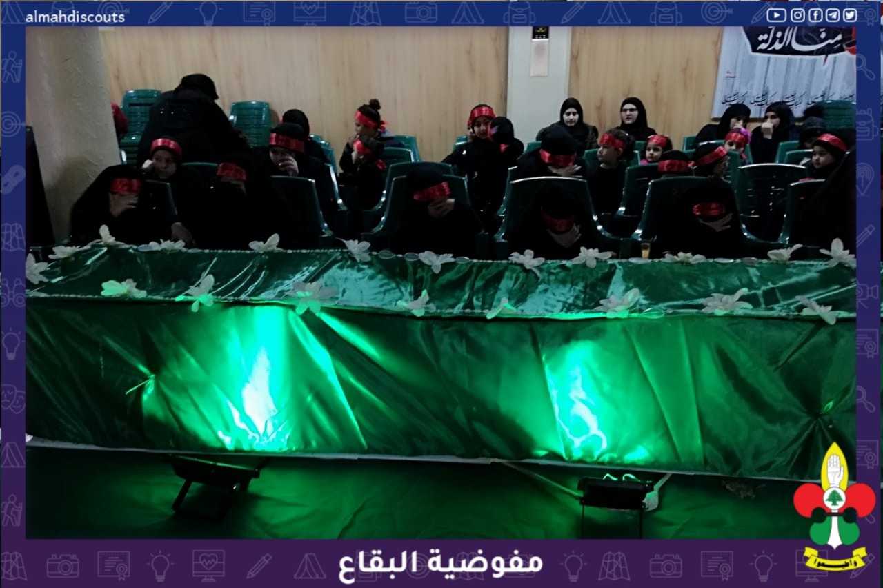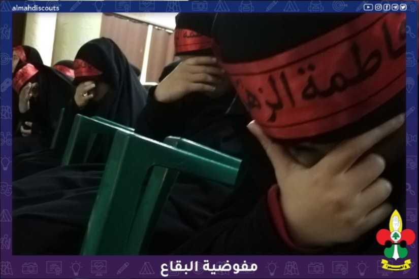 بمناسبة استشهاد الصديقة الكُبرى السيدة فاطمة الزهراء عليها السلام، أقام فوج بطلة كربلاء/ العين/القطاع الشمالي وبالتعاون مع الهيئات النسائية، مجلس عزاء فاطمي ولطمية جماعية للعناصر (لك دار في قلبي) بجو روحاني حزين، وفي الختام وزع الطعام على حب الزهراء على الأمهات والكشفيات الحاضرات
