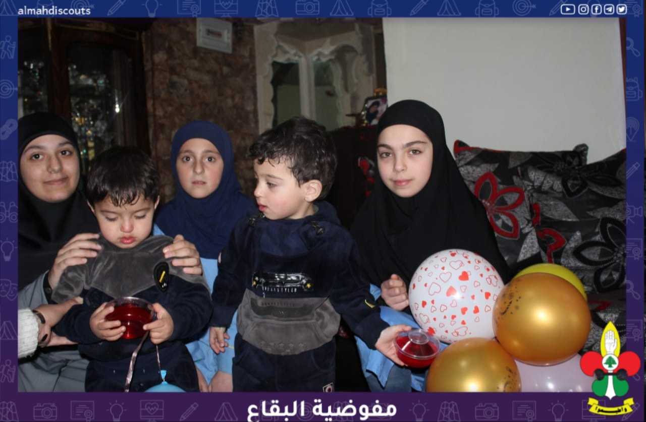 بمناسبة ولادة السيدة فاطمة عليها السلام، قامت زهرات فوج السيدة الحوراء/ النبي شيت شرقي/ القطاع الشرقي بتوزيع الهدايا والحلوى والبلاوين على الأطفال الأيتام في البلدة حيث انتشر جو من الفرح والسعادة بينهم.