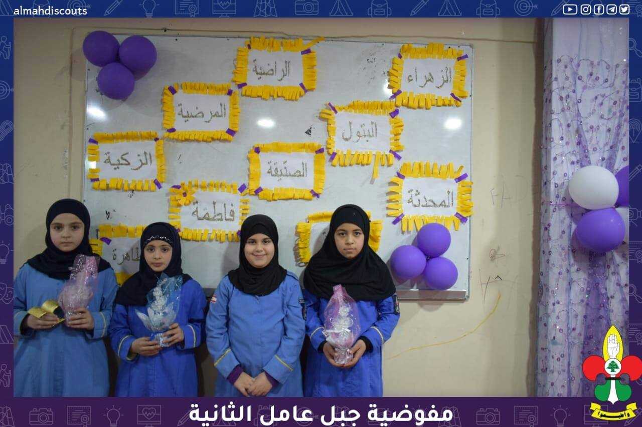 بحضور معاون المفوض العام لجمعية كشّافة الإمام المهدي عجّل الله فرجه، وفي أجواء الولادة المباركة للسيّدة الزّهراء عليها السّلام، أقام فوج السيّدة مريم (ع)/عدشيت إحتفالاً للمناسبة تخلّله إطلاق مشروع نجمات البتول (ع) للعام 2019 وتكريم المشاركات بالمشروع العام الماضي، وتخلّله مجموعة من الفقرات الفنية والكشفية من وحي الأجواء