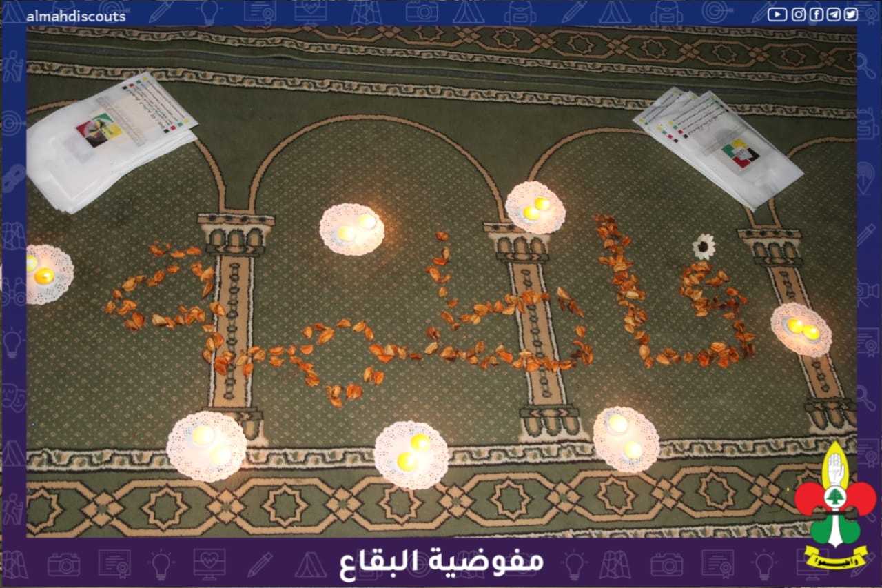 على حب فاطمة كان لقاء فرقة المرشدات والدليلات في فوج السيدة نرجس /بدنايل /القطاع الاوسط، تضمن النشاط ورشة عن التواصل الاجتماعي والاحتفال بولادة البتول و توزيع الهدايا للتي تحمل اسم فاطمة بحضور ١٥ كشفية واختتم النشاط بدعاء الحجة عجل الله فرجه