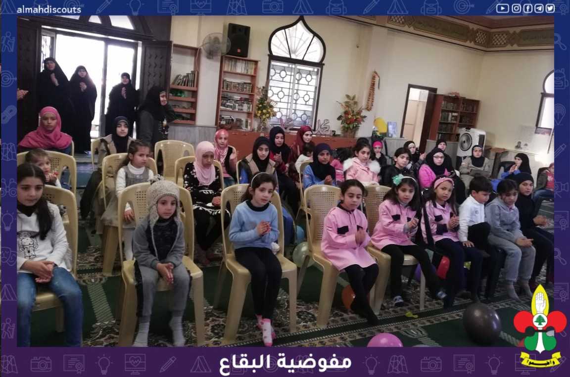 اقام فوج السيدة الزهراء/ قطاع الهرمل احتفالا في اجواء ولادة السيدة الزهراء وولادة الامام الباقر عليهما السلام، افتتح بالقرآن الكريم، ثم قصيدة، فمولد من وحي المناسبة والختام بتوزيع الهدايا ودعاء الحجة...