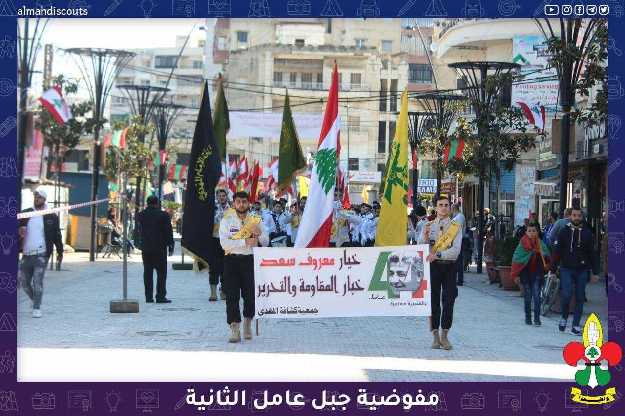 شاركت الفرقة الموسيقية التابعة لفوج الإمام الحسين (ع)/مشغرة وفرقٌ كشفية من قطاع الإمام العسكري(ع)/صيدا مفوضية جبل عامل الثانية، في مسيرة الوفاء للشهيد معروف سعد في مدينة صيدا.