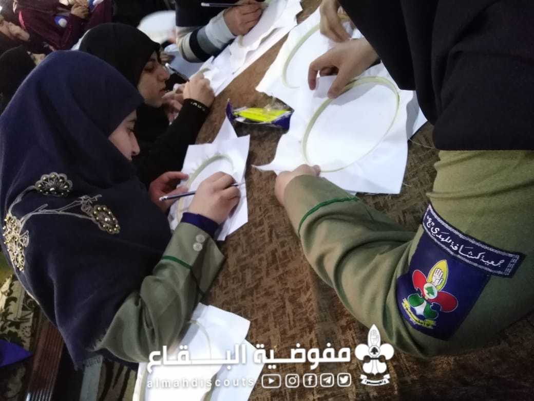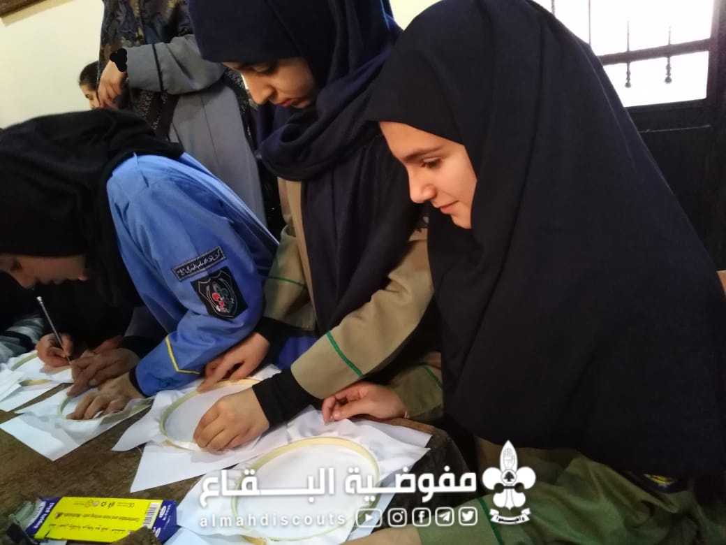 بمناسبة عيد الام وولادة الإمام علي عليه السلام أقام فوج السيدة الزهراء عليها السلام/البزالية /القطاع الشمالي ورشة التطريز بالخيطان للكشفيات.. شاركت ٣٢ كشفية بحماس واندفاع للتعلم فأبدعن في اللوحات وتعلمن قواعد الخياطه والتطريز. أقيمت الورشه لمدة ٦ ساعات على يومين.. واختتمت بزيارة اضرحة الشهداء وأموات البلدة ليلة الجمعة..