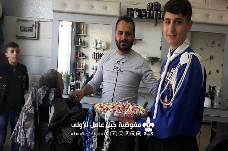 في أجواء ولادة الائمة الأطهار (عليهم السلام) قام افراد من عشيرة الجوالة في فوج آية الله السيد عبد المحسن فضل الله (قدس الله سره)/ خربة سلم في قطاع الحجير بتوزيع الحلوى على المحلات التجارية في البلدة.