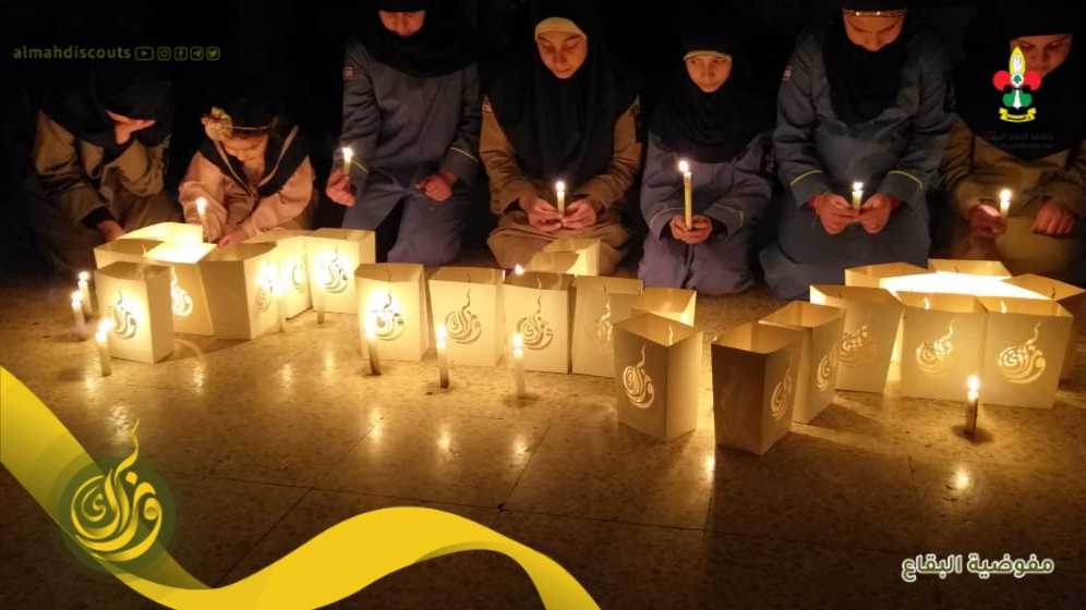 أحيا فوج السيدة خديجة/ قطاع الهرمل ليلة الخامس عشر من شعبان بالتعاون مع الهيئات النسائيه، حيث أضاءت الكشفيات الشموع وكتبن بها كلمة *مهدي*...