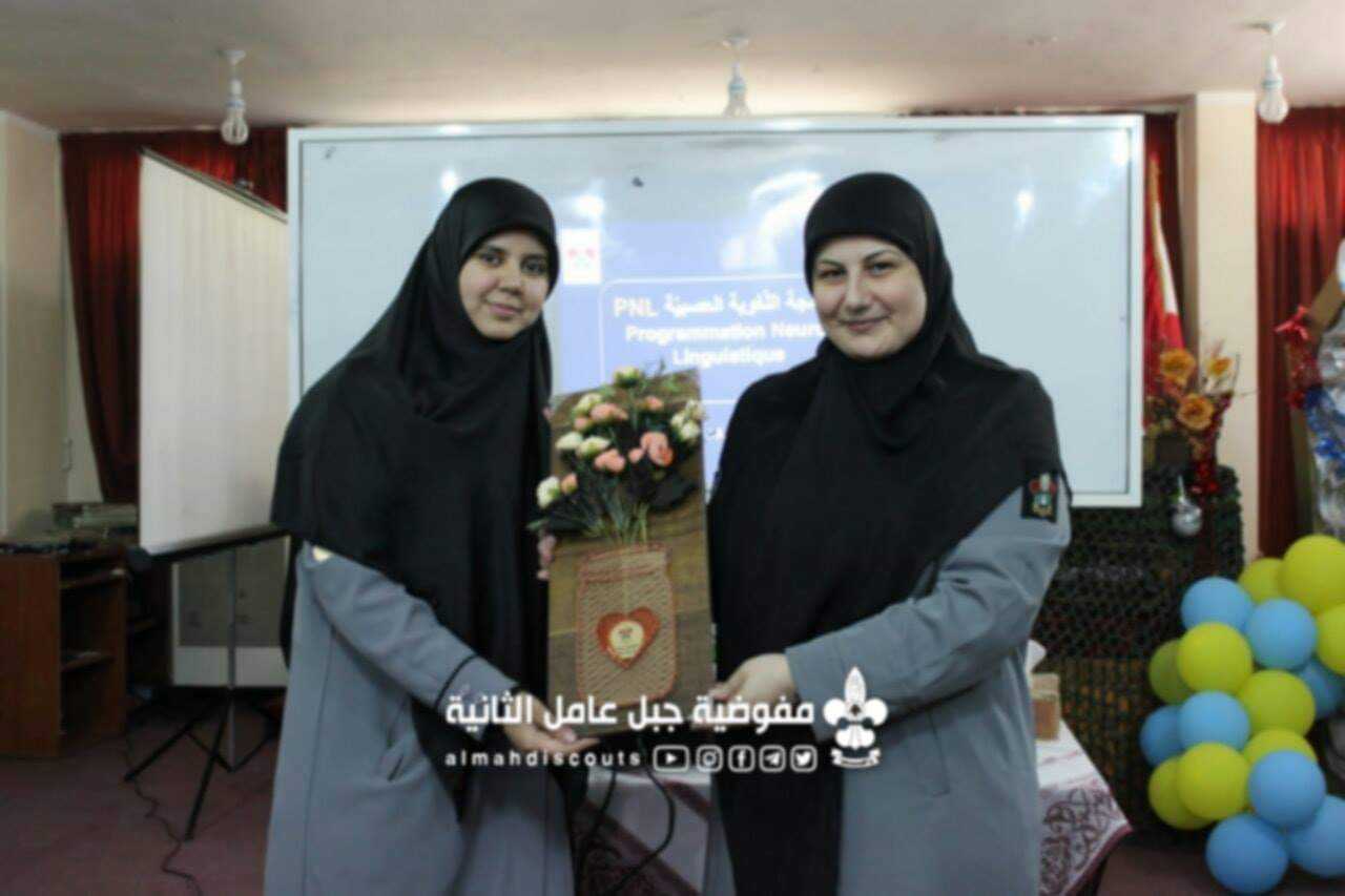 من ضمن سلسلة الورش التي استهدفت القائدات في مفوّضية جبل عامل الثانية خلال عطلة فصل الربيع، شاركت 40 قائدة من مختلف أفواج مفوضية جبل عامل الثانية بورشة تدريبية حملت عنوان "البرمجة اللغوية العصبية" قدّمتها لهنّ المتخصّصة في التنمية وإدارة الموارد البشرية الدكتورة بادية سرور، وفيها تعرفن على كيفية إنجاز الأهداف الشخصية بشكل فعّال وتنمية المهارات والقدرات وبرمجة العقل الباطني، واختتمت بتقديم هدية رمزية للمدرّبة وتوزيع الإفادات على المُشاركات.