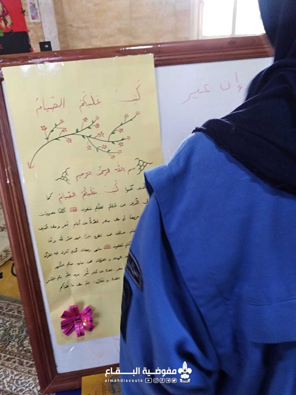 في اجواء استقبال شهر رمضان المبارك اقام فوج السيدة خديجة /حوش الرافقة /القطاع الاوسط ورشة احكام الصوم للكشفيات