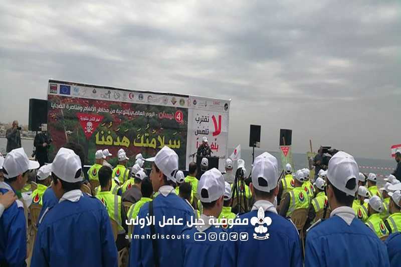مشاركة كشفيو فوج الإمام الجواد (عليه السلام)/ صور في النشاط الذي نظمته الهيئة الصحية الإسلامية والجيش اللبناني في اليوم العالمي للتوعية من مخاطر الألغام ومناصرة الضحايا وتخلل النشاط مناورة حية للجيش اللبناني وجولة على معرض صور وتوزيع هدايا على المشاركين وذلك في مدينة صور.