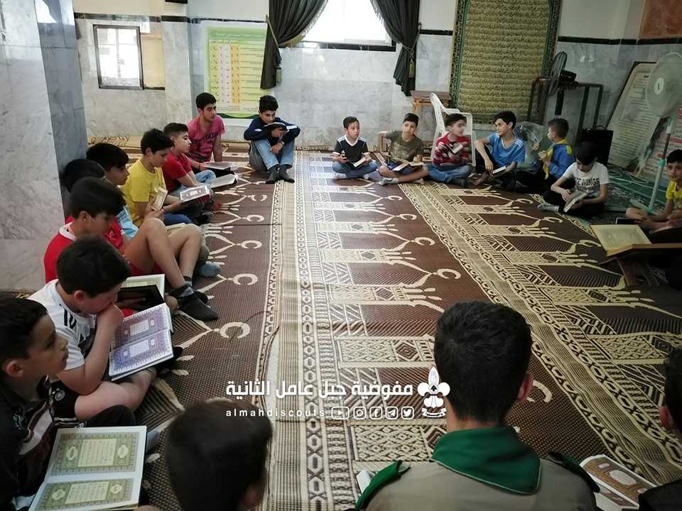 حلقة تصحيح تلاوة قرآنيّة وختمية جزء يوميّاً للكشفيين في فوج الإمام الباقر(ع)/ رومين إحياءً للتديّن المسجدي.